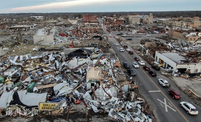 美國(guó)中部6個(gè)州10日夜間遭遇至少30場(chǎng)龍卷風(fēng)侵襲,截至目前已致超過(guò)100人死亡,肯塔基州受災(zāi)最嚴(yán)重