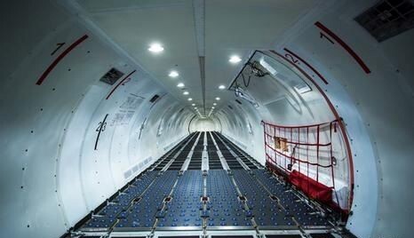 4.裝貨前,我們看看飛機內部結構吧,地板上有專門用來和集裝箱(集裝板)相扣的鎖止結構,防止集裝箱(集裝板)滑動: