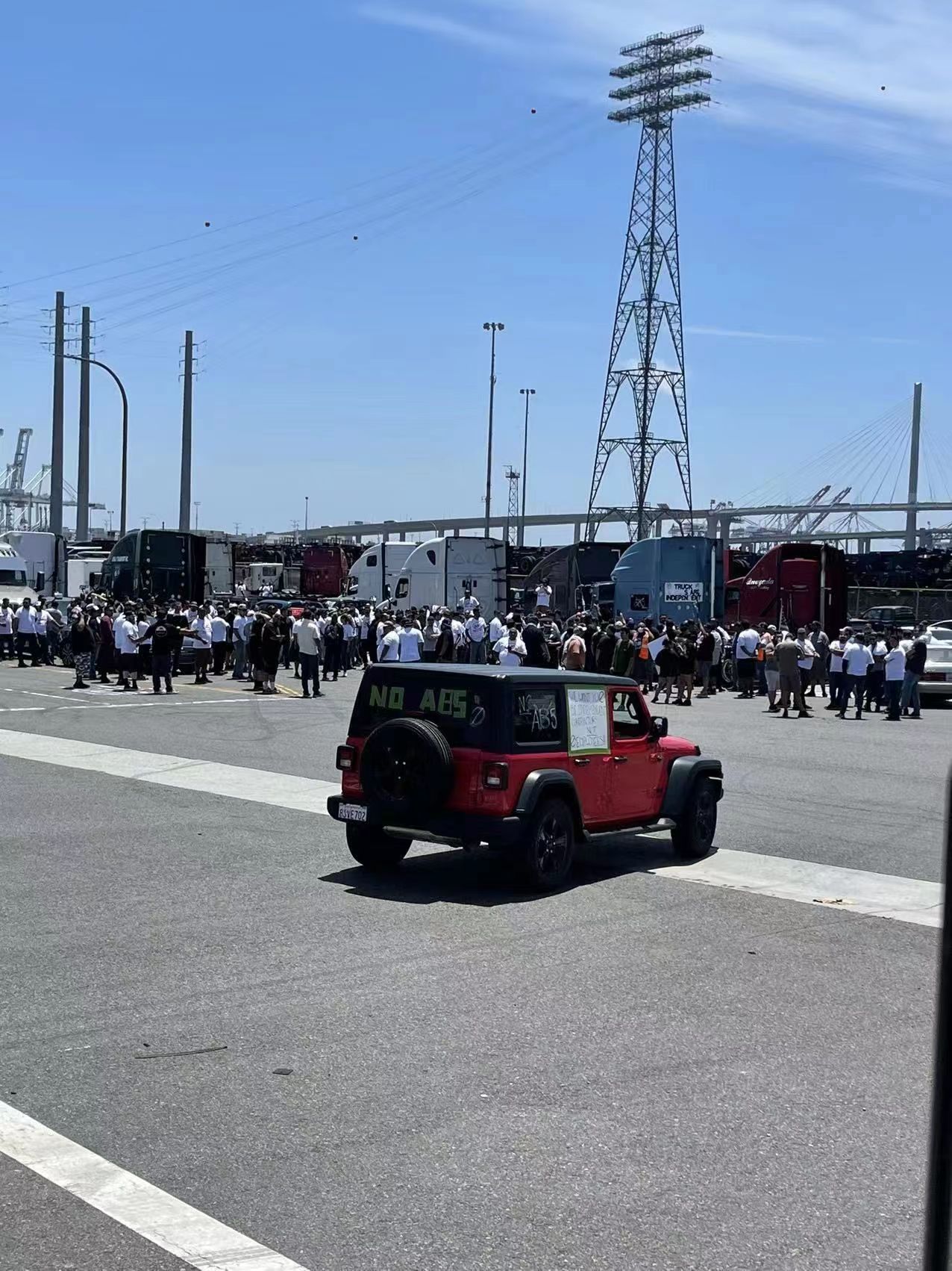 TraPac碼頭向貨運卡車司機傳送了信息,稱由于“正在進行的抗議活動干擾入口”,碼頭的第一輪班在周三無法工作。