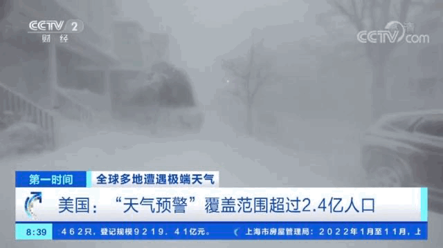 據央視新聞報道,當地時間12月23日,美國出現了大規模極端寒冷天氣,受影響人數超過2.4億??纤葜蓍L當天宣布,該州三人死于極端寒冷天氣。